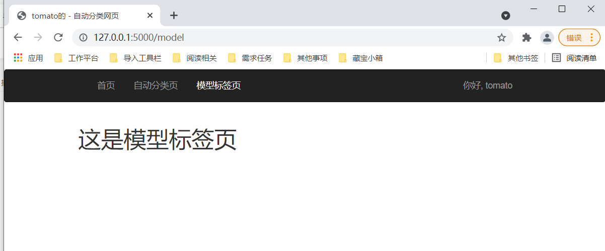return render_template('model.html',title ='tomato的',user= user)运行后界面如下:
