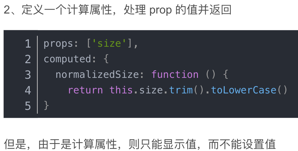 prop 是单向绑定的:当父组件的属性变化时,将传导给子组件,但是不会反过来。这是为了防止子组件无意修改了父组件的状态 —— 这会让应用的数据流难以理解