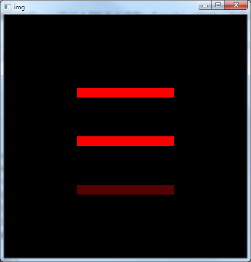 cv2.destroyAllWindows()结果如下,可以看出当图像深度为CV_8U时,cv2.imshow()按原有数据显示,表现为明暗不同的两条红线,数字越大,亮度越大