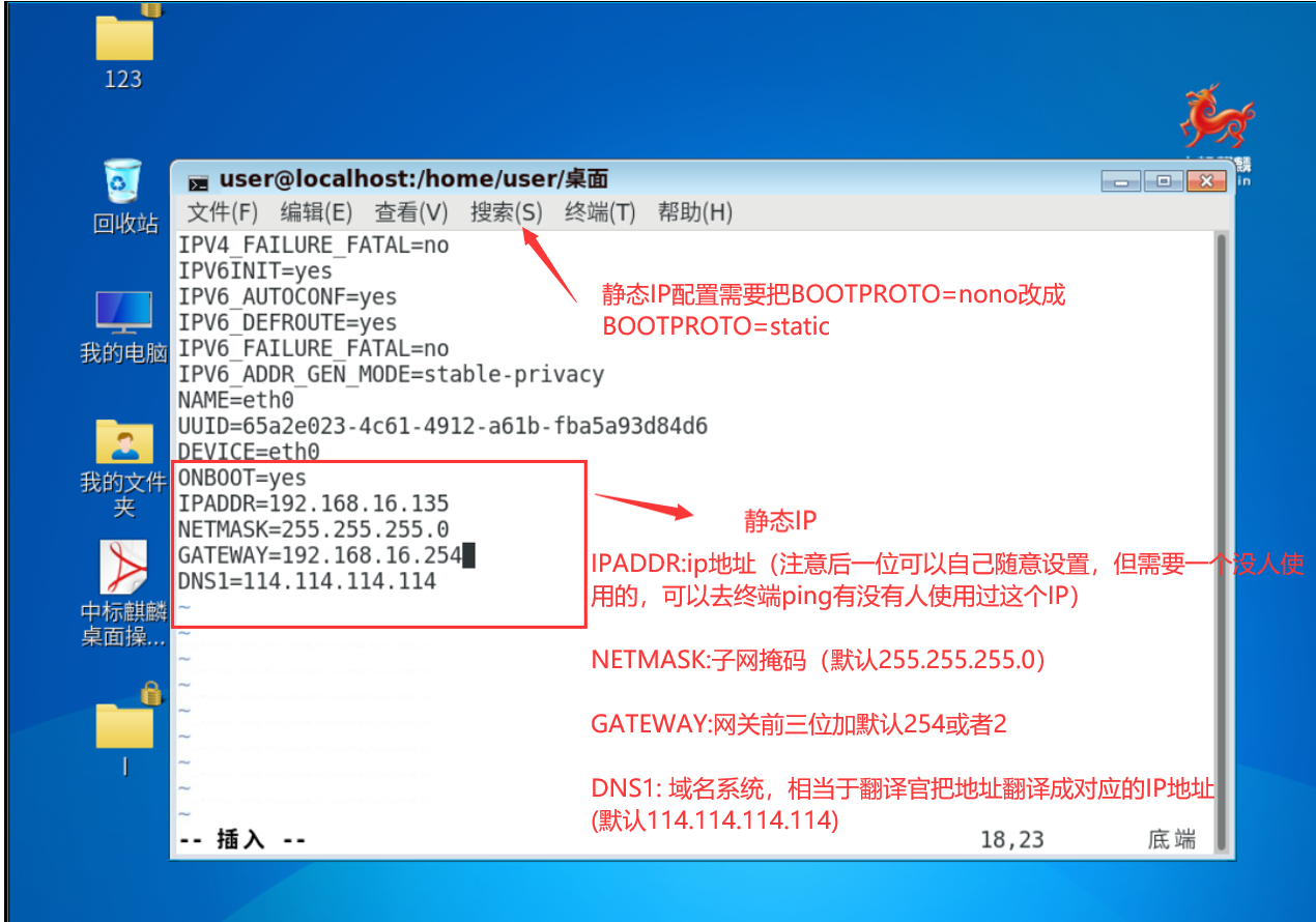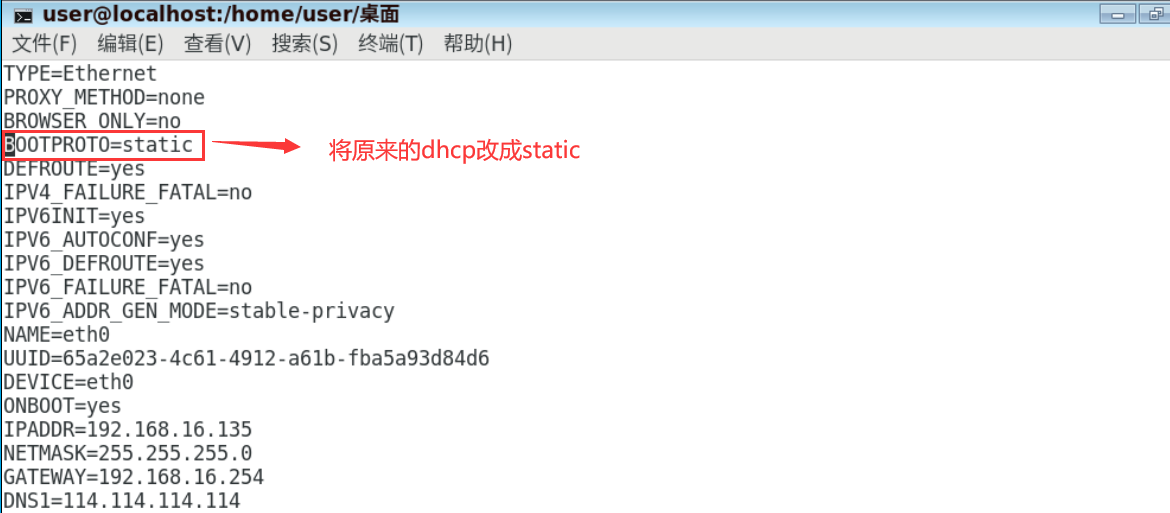 IPADDR:IP地址(注意后一位可以自己随意设置,但需要一个没人使用的,可以去终端ping有没有人使用过这个IP)