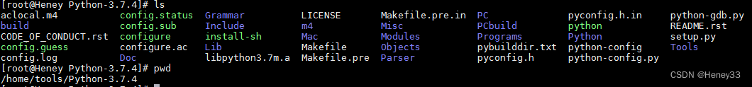 执行tar -xvzf Python-3.7.4.tgz命令,将文件解压至当前目录,解压出来的目录如下: