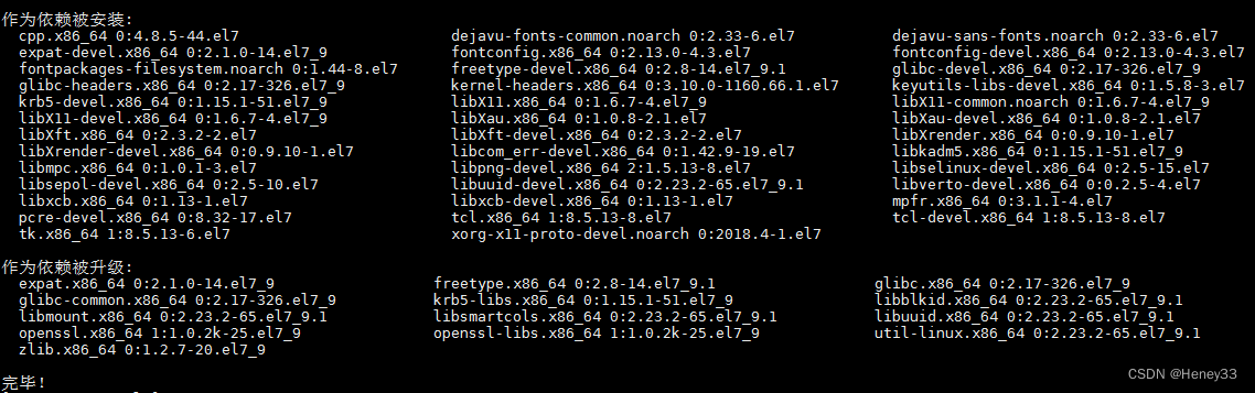 yum -y install zlib-devel bzip2-devel openssl-devel ncurses-devel sqlite-devel readline-devel tk-devel libffi-devel gcc make安装Python需要的依赖,成功后提示(Complete或完毕),如下图: