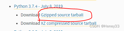(1)登录https://www.python.org/downloads/source/找到对应版本(我们以Python 3.7.4为例,因为当前开发的工具均基于3.7.4版本),下载Python-3.7.4.tgz,如图: