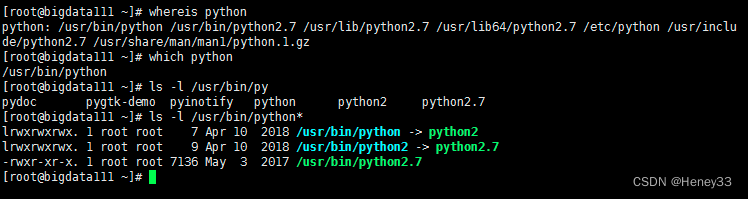 /usr/bin/python和/usr/bin/python2都是软链接,/usr/bin/python指向/usr/bin/python2,而/usr/bin/python2最终又指向/usr/bin/python2.7。所以运行python/python2/python2.7效果是一样的。