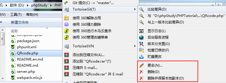 删除操作,提交的时候都有了,更名同理,我就不贴图了,