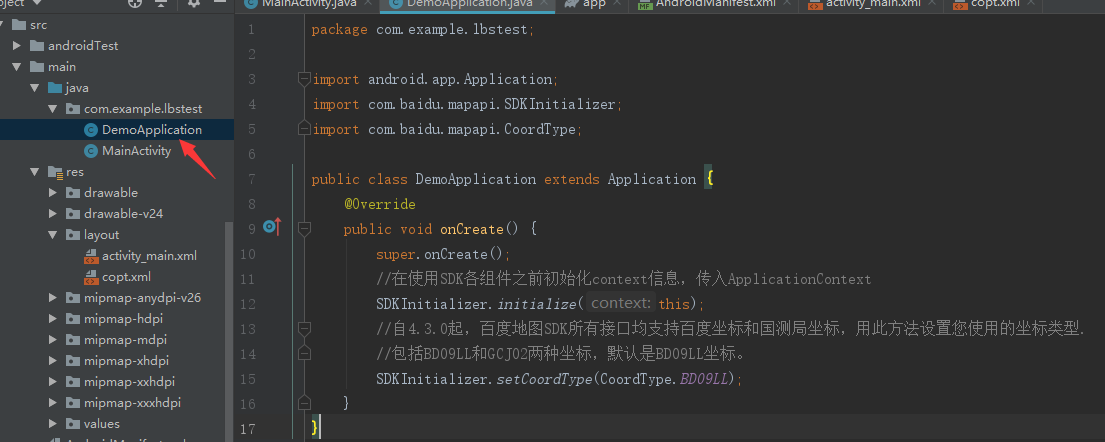 按照官网的要求,先新建一个自定义的Application,在其onCreate方法中完成SDK的初始化: