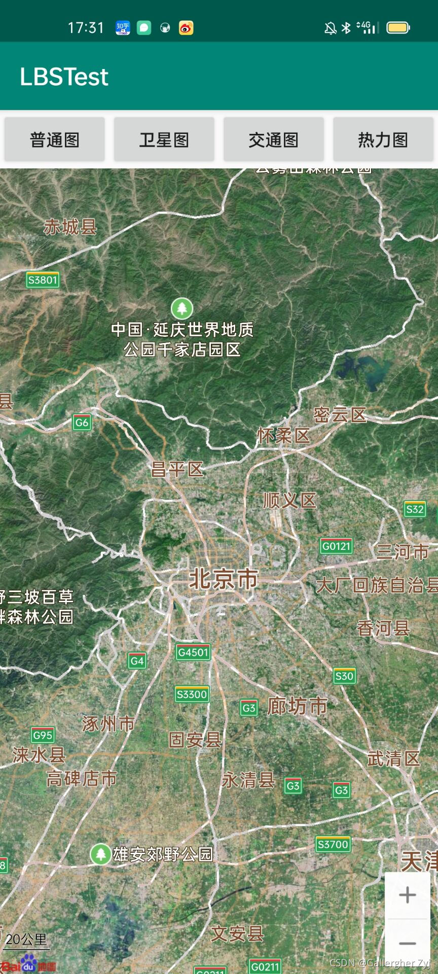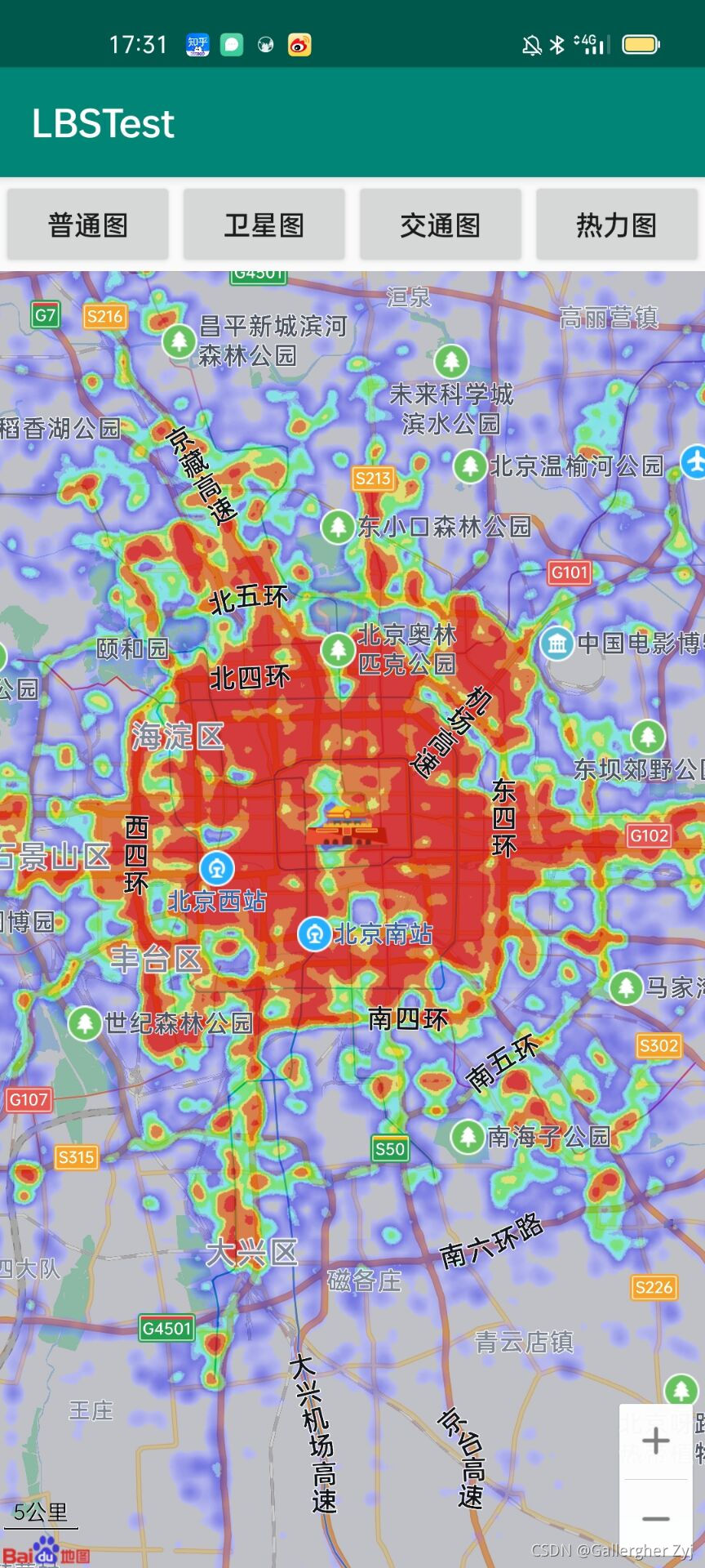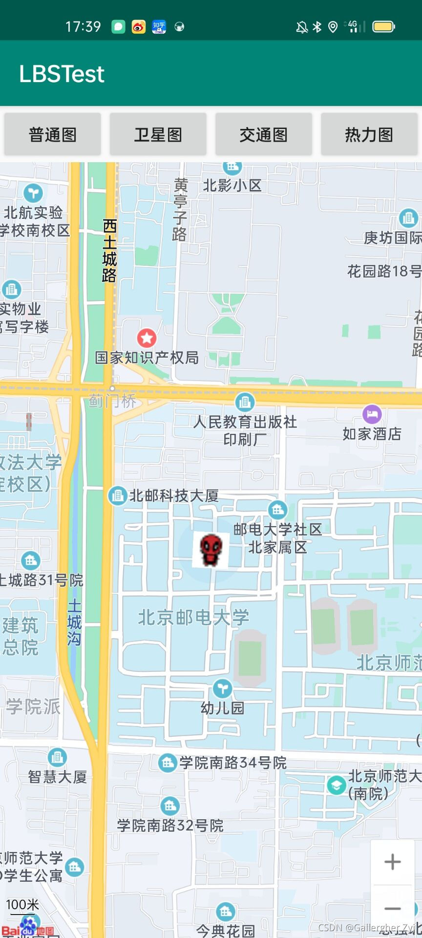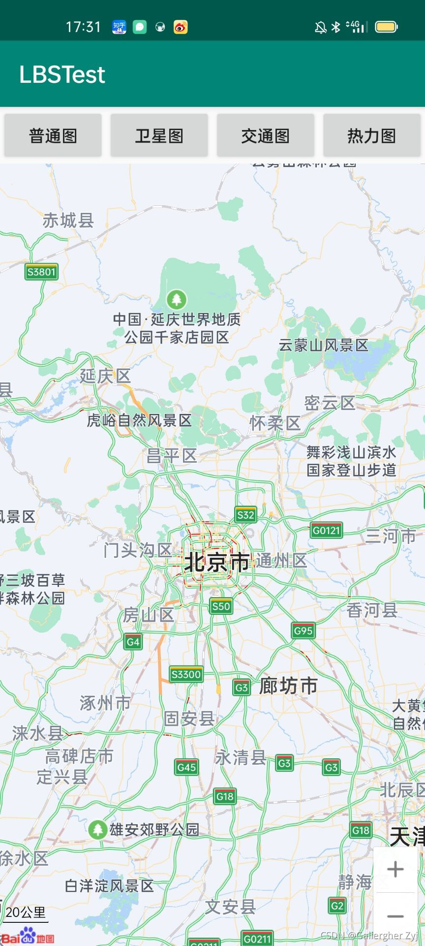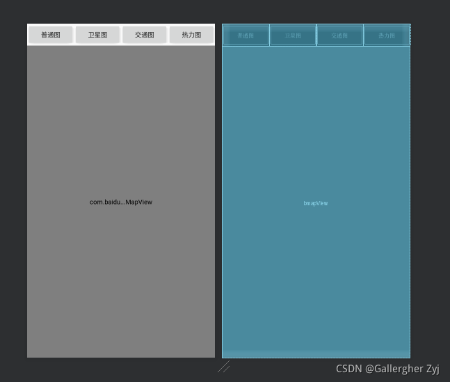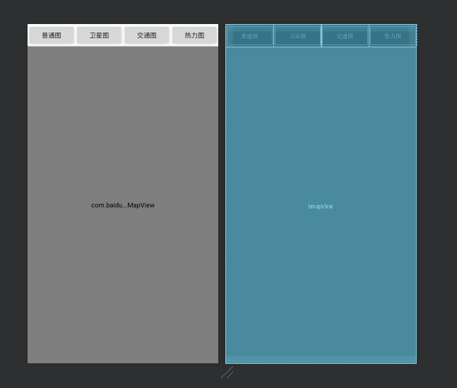 这里显示了普通的地图,卫星图,交通图和热力图,首先我们的前端界面,也就是activity_main.xml文件为: