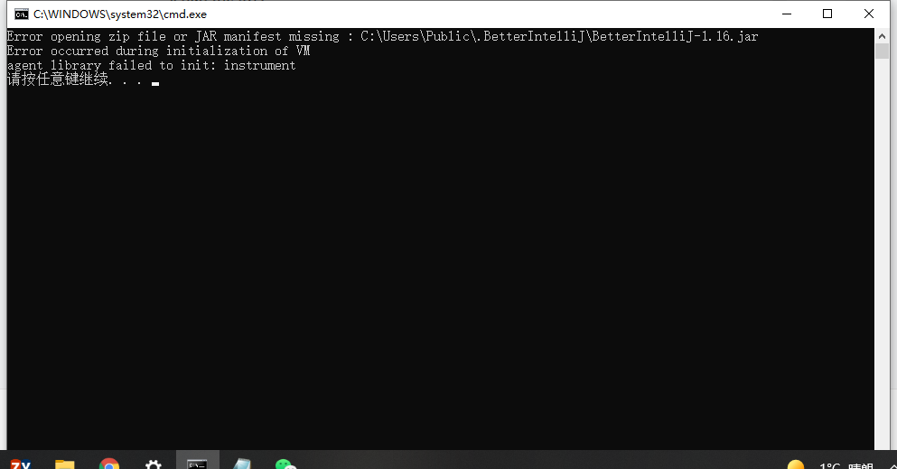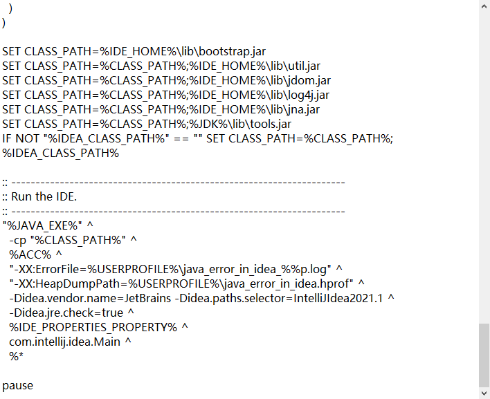 3.成功。在安装idea的路径中找到idea.bat,右击编辑,在下面写一个pause