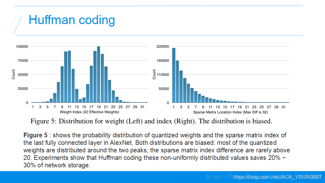 Huffman Encoding(哈夫曼编码):对权值进行哈夫曼编码能进一步的减少冗余;