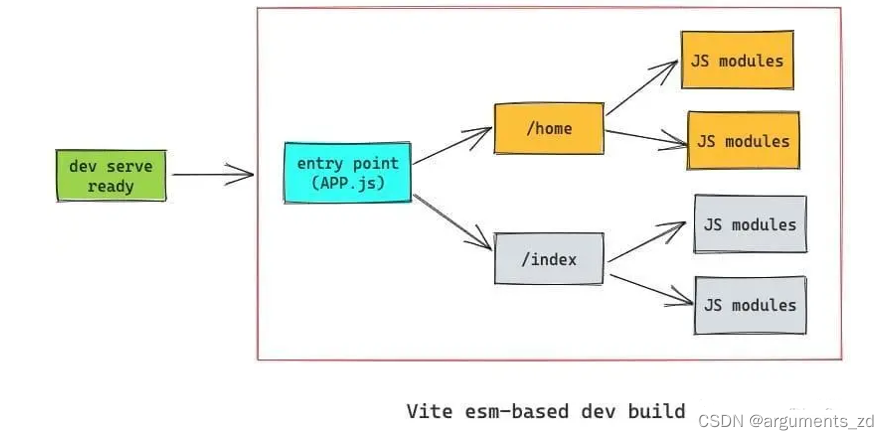 开始开发构建时,Vite首先将JavaScript 模块分为两类:依赖模块和源码模块。