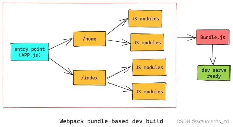 核心思想:因为这样的处理规则,当保存文件时,整个 JavaScript 包将由 Webpack 重新构建,这就是为什么更改可能需要长达 10 秒才能反映在浏览器中,更新速度会随着应用体积增长而直线下降。