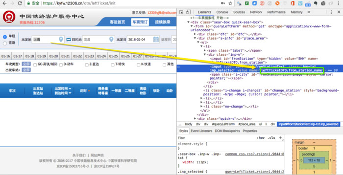 找到相应URL,找到控件模拟登录、查询、订票操作。关键是找到控件名称,难点是起始地不是直接输入的页面值,需要在cookie中查出。