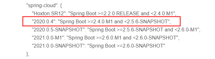 "2020.0.4": "Spring Boot >=2.4.0.M1 and <2.5.6-SNAPSHOT",