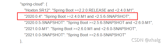 3.找到springcloud节点这里可以看到对应的版本了吧,2.5.5对应的版本是2020.0.4