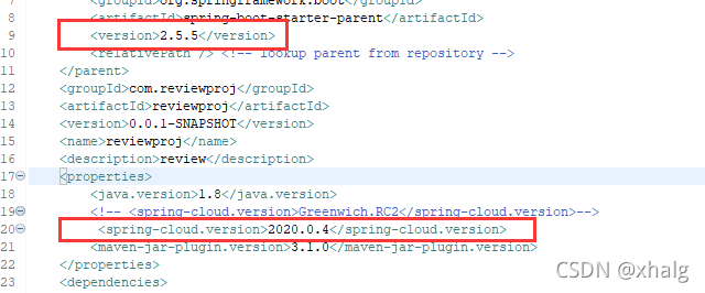在springboot框架下应用springcloud搭建微服务时,避免不了要考虑版本对应的关系,否则就会导致在工程启动的时候出现异常。如下图,是我在最新的springboot2.5.5版本下,从以前的工程中拷贝的springcloud版本号