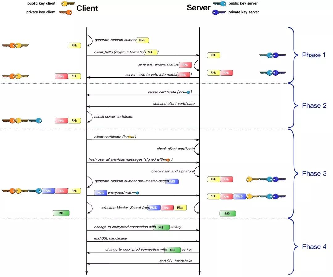简称解释:RN: Random Number;PMS: Pre Master Secret;MS: Master Secret