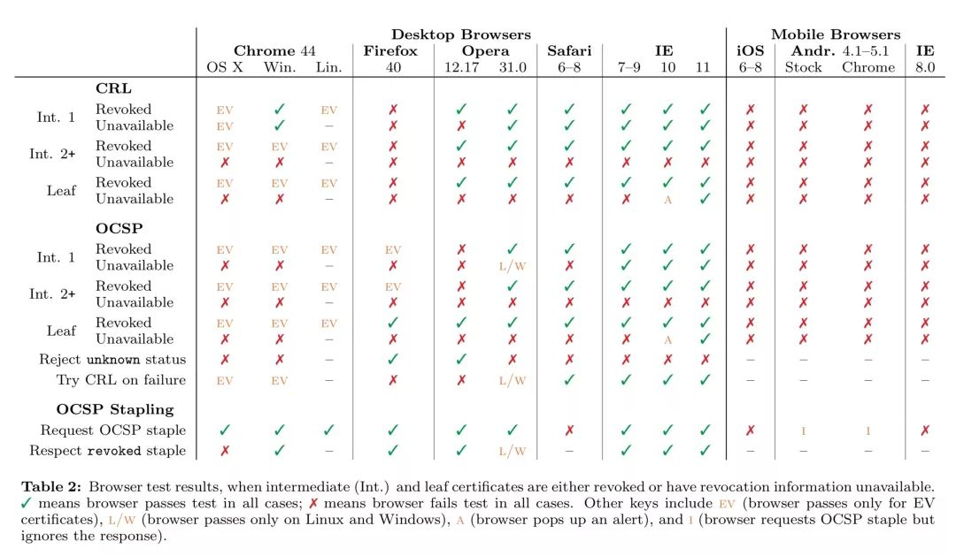 subjectAltName = @alt_names各平台上浏览器对证书吊销的支持情况