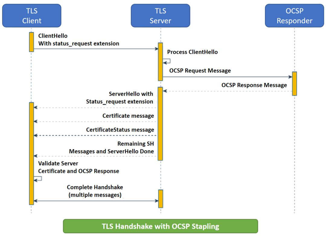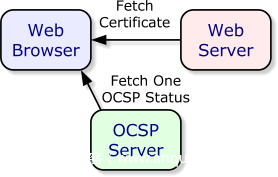 在RFC2560X.509 Internet Public Key Infrastructure Online Certificate Status Protocol – OCSP的描述中,浏览器从在线OCSP服务器(也称为OCSP Response Server)请求证书的撤销状态,OCSP Server予以响应。