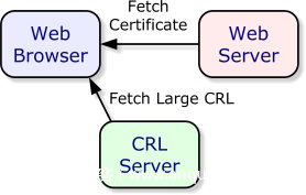可以想象一下,在浏览器去校验证书合法性时,还要去下载一个1M的文件后,再去校验。校验通过后才去连想要访问的网站服务器,这相当浪费时间、效率。同时,很多浏览器所处网络是有网络访问限制的,可能在一个局域网,比如我们村,或者物理距离非常远,存在严重的网络延迟问题。