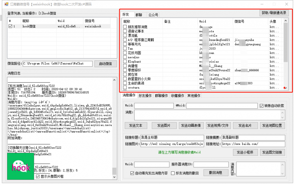 【最新微信hook二次开发c#源代码】中包含比较全面的功能。