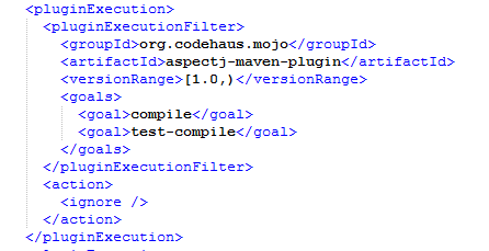 同理Plugin execution not covered by lifecycle configuration:org.codehaus.mojo:aspectj-maven-plugin:1.7:compile (execution: default-compile, phase: test-compile)