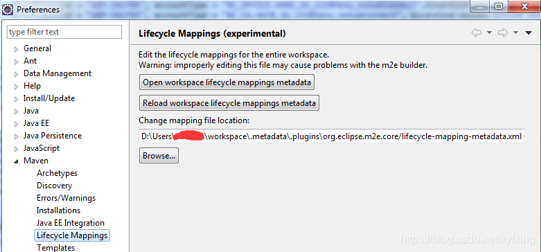 1. 进入Window—>Preferences—>Maven配置,进入Lifecycle Mapping设置项,如下图: