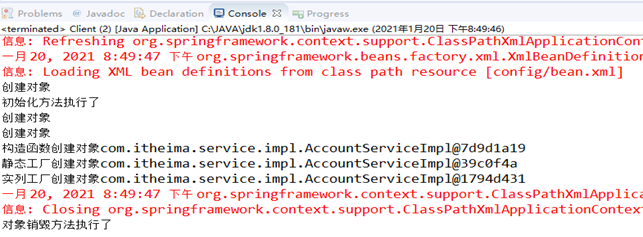 <bean id="accountService"class="com.itheima.service.impl.AccountServiceImpl" scope="singleton" init-method="init" destroy-method="destroy">
