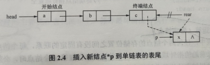 概述:将新结点插入在当前链表的表尾上,因此需要增设一个尾指针rear,使其始终指向链表的尾结点。