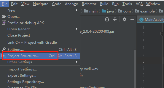 1.点击菜单栏 file > Projects Structure(或者通过快捷键 Ctrl+Alt+Shift+S 快速打开);