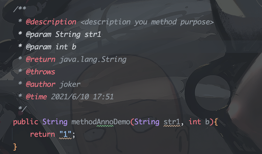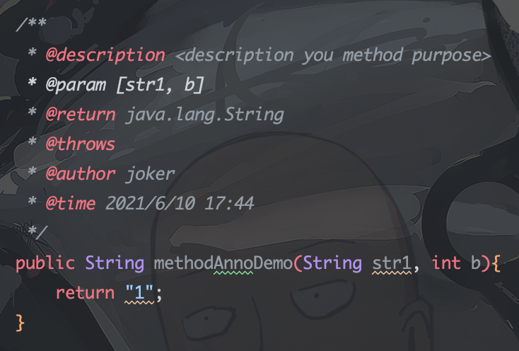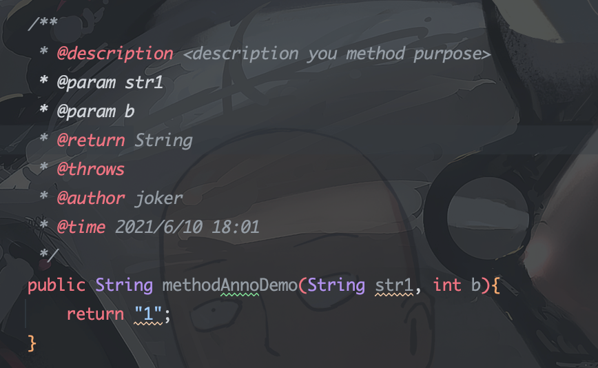 我们一般都希望能够返回这种样式的参数和返回类型。有基本的参数名称和返回类型。图示这是在敲了/**后,再敲回车,idea自动给补全的。