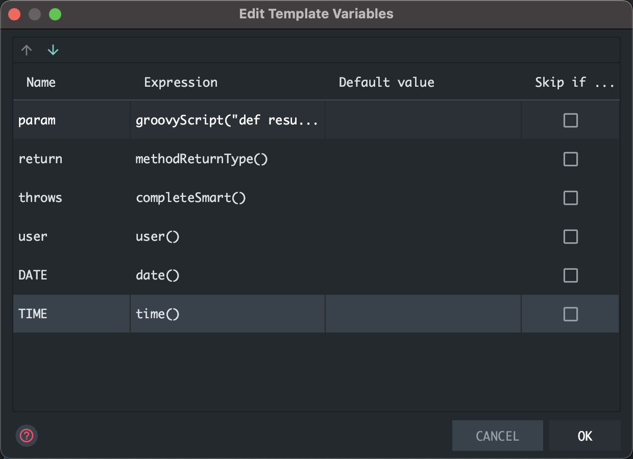 可是idea自带的补全是没有参数类型的,那么就需要我们自己设置一下。强大的idea给提供了很多默认的方法用于获取参数的值。具体Expression方法都是什么意思,大家可以参考一下官方介绍。