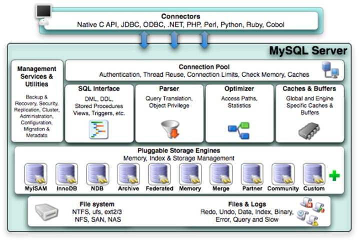 3、存储引擎,含各种以插件提供的数据存储引擎。
