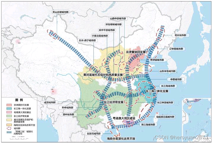 第一个变化是,确立了6大国家战略。这6大国家战略,包括京津冀协同发展、粤港澳大湾区建设、长三角一体化、长江经济带、黄河流域生态保护与高质量发展、海南全面深化改革开放。京津冀、大湾区、长三角是三大世界级城市群,海南则有自贸港战略的加持,长江、黄河两大经济带覆盖南北主要城市,这是国家战略布局的宏观立足点。