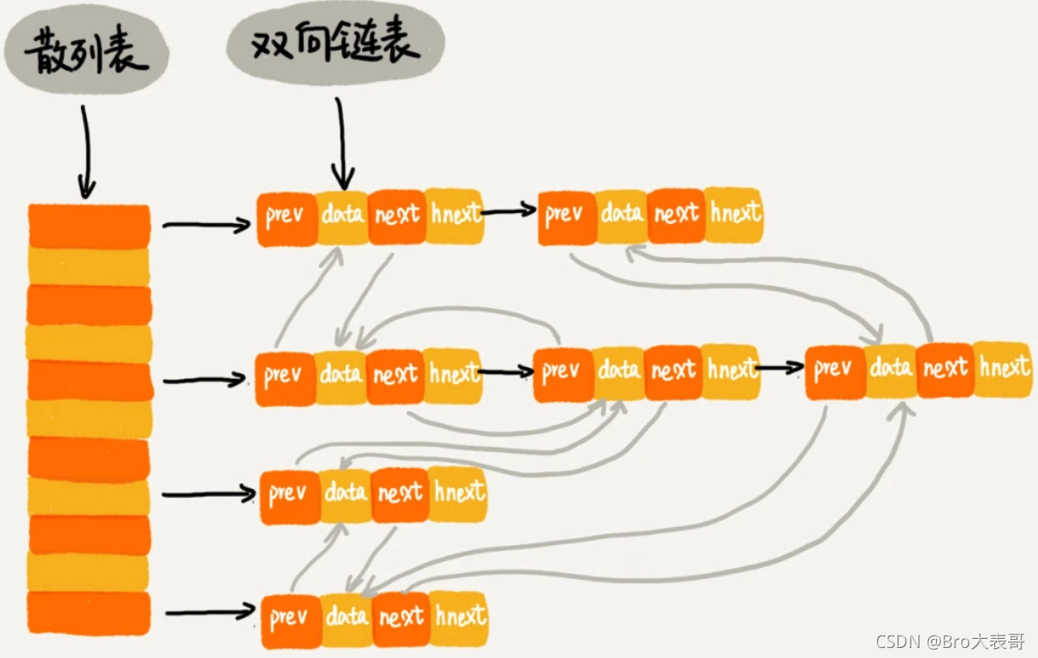 - 查找数据:首先计算 数据的hash值找到散列表下标,时间复杂度接近O(1) 。然后在双向列表中找到缓存值。 当找到数据之后,我们还需要将它移动到双向链表的尾部。