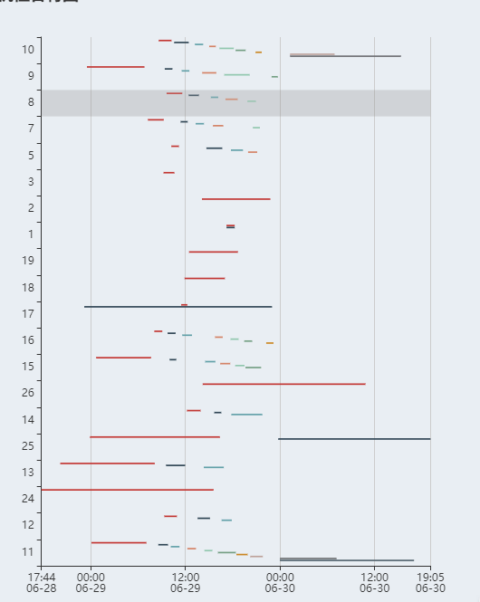 效果如下图:y轴为餐桌编号,x轴为客人预订的时间: