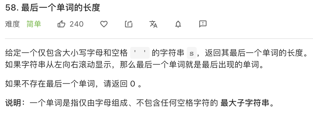 这次来写一下 LeetCode 的第 58 题,最后一个单词的长度。