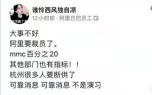 本周,阿里旗下MMC事业群已率先计划裁员,本次裁员数量约20%,目前多个业务线已经初步敲定裁员名单。