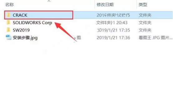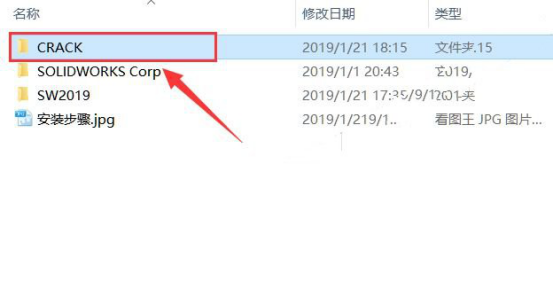 27.双击打开之前解压后的【SolidWorks 2019】文件夹里面的【CRACK】文件夹。