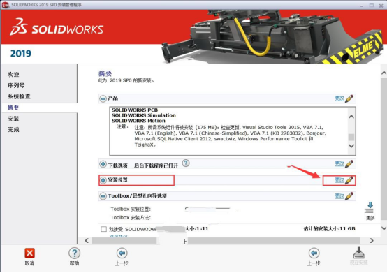 17.点击【浏览】选择软件的安装目录,建议安装在除C盘之外的其他磁盘,可以在D盘或其他盘新建一个【SOLIDWORKS】文件夹,然后点击【返回摘要】。