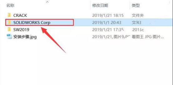 23.双击打开之前解压后的【SolidWorks 2019】文件夹里面的【SOLIDWORKSCorp】文件夹。