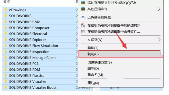 1.鼠标右击【SolidWorks 2019.zip】压缩包,选择【解压到SolidWorks 2019】。