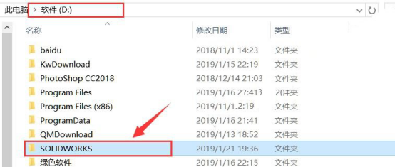 2.双击打开【SolidWorks 2019】文件夹