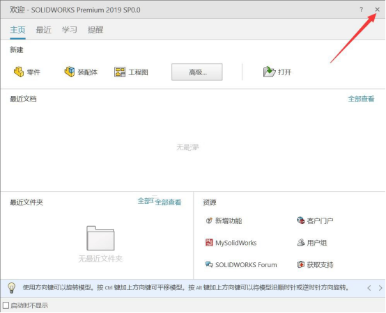 22.取消勾选【为我显示SOLIDWORK 2019 中的新功能】然后点击【完成】。