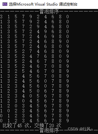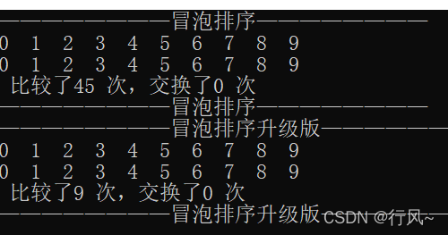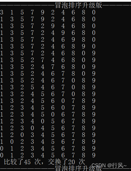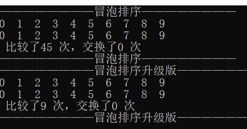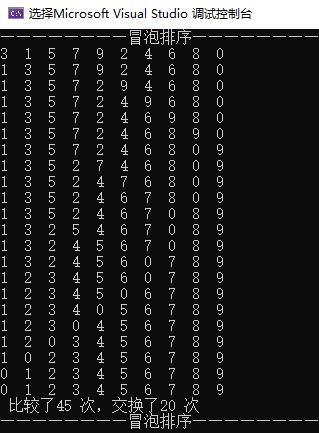 printf(" 比较了%d 次,交换了%d 次\n", cmpNum, swapNum);