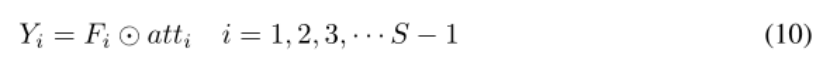 最后将多尺度通道注意力atti的重新校准权重与相应尺度Fi的特征映射相乘为