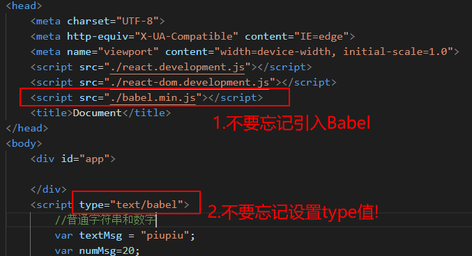 因为jsx是可以这样写的, 所以看了半天也感觉没有毛病, 后来逐层网上找, 突然发现原来是忘记设置<script>的type值为babel了, 因为下面是jsx语法, script默认的type值为JavaScript, 是不能解析jsx语法的, 因此