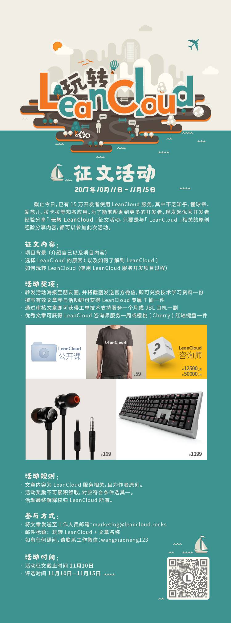 LeanCloud正在发起线上征文活动,详情请点击活动海报 ↓ ↓ ↓