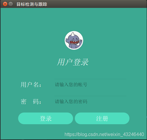 本次的改进与前面两次变动很大,加入了登录与注册界面,检测跟踪界面也重新规划,界面进行了美化,加入了界面跳转功能等等。先上图