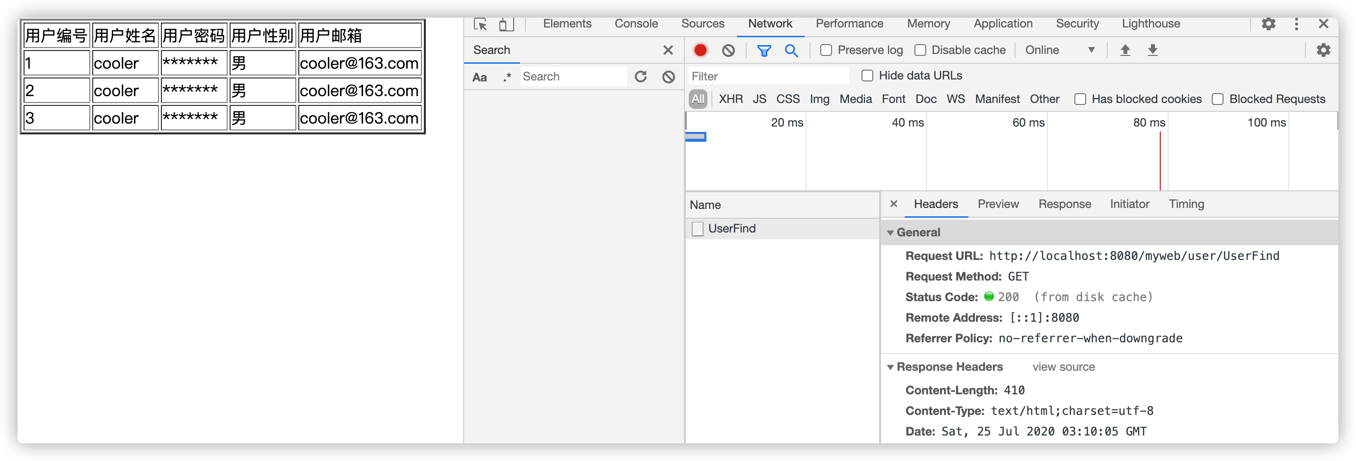 //1:调用dao将查询命令发到数据库服务器中,得到所有的用户信息