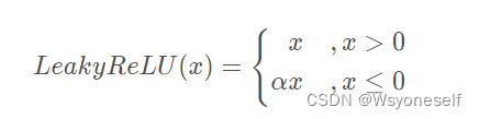 其中v是k维向量,g是标量,∥ v ∥为v 欧式范数。w 则被重参数为v 和g两个参数。通过上述重参数表示,我们可以发现∥w∥=g,与参数v独立,而权重w 的方向也变更为v /∥ v ∥。重参数将权重向量w 用了两个独立的参数表示其幅度和方向。在利用SGD优化算法时,重参数可以加速网络的收敛速度。 - leakrelu激活函数: